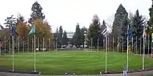 The "walk" was dedicated on June 14, 2005, and the nine flags of Oregon's federally recognized Native American tribes were added as a separate display in 2009.[1][2] These tribes include: Burns Paiute Tribe, Confederated Tribes of Coos, Lower Umpqua and Siuslaw, Coquille Indian Tribe, Cow Creek Band of Umpqua Tribe of Indians, Confederated Tribes of the Grand Ronde Community, Klamath Tribes, Confederated Tribes of Siletz Indians, Confederated Tribes of the Umatilla Indian Reservation, and the Confederated Tribes of Warm Springs.[1]