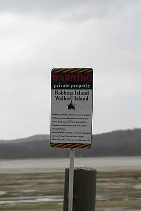 ![]() Sign at crossing to Robbins and Walker Islands. | |