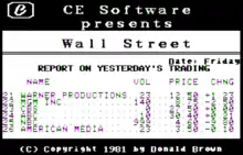 Daniel Hockman reviewed the game for Computer Gaming World, and stated that: "One of the best features of the game is the ability to list the day's stock quotes on a printer. This has two advantages over viewing the quotes on a CRT. First, you must flip through several "pages" of the daily report to see all the stocks on a CRT. Second, hard copy allows you to get a history on a stock."[1]