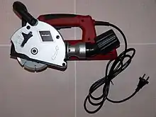 A wall chaser is a specialised power tool used for cutting narrow grooves in walls, brickwork, blockwork, or concrete. Wall chasers are often used to lay electrical cable inside the walls, with openings about 30mm wide.[1] The tool is usually powered by an electric motor that drives a pair of abrasive discs like those found in an angle grinder, positioned closely together.[2]