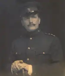 Upon graduation from RMC he served in the British Army's 21st Hussars for four years before returning to Canada. He then served in the 14th Battalion, The Princess of Wales’ Own Rifles until 1899 when he resigned his commission in order to take part in the South African War. He served as a Sergeant in the 2nd (Special Service) Battalion of The Royal Canadian Regiment and took part in the Battle of Paardeberg. Carruthers returned to South Africa for further service as a Lieutenant in the 2nd Regiment, Canadian Mounted Rifles. On March 31, 1902 he fought at the Battle of Hart's River where he was leading some 21 men of 3rd and 4th Troops 'E' Squadron to screen the main body of Cookson's Column as they prepared a defensive position. Faced with several hundred charging Boers and no cover, Lieutenant Carruthers dismounted his men to meet the attack. They fought until out of ammunition by which time 17 had been killed or wounded, including Carruthers.[2][3] As a result of his service he was awarded the Queen's South Africa Medal with five clasps: Paardeberg, Driefontein, Johannesburg, Cape Colony, SA 1902.[4]
