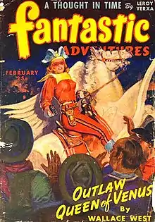 West's novelette "Outlaw Queen of Venus" was the cover story for the February 1944 issue of Fantastic Adventures