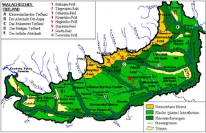 The Romanian Plain (Romanian: Câmpia Română)[1] is located in southern Romania and the easternmost tip of Serbia, where it is known as the Wallachian Plain (Serbian: Vlaška nizija/Влашка низија).[2] Part of the historical region of Wallachia, it is bordered by the Danube River in the east, south and west, and by the Getic Plateau in the north. Bucharest, the capital of Romania, is located in the central part of the Romanian Plain. It is contiguous to the south with the Danubian Plain (Bulgarian: Дунавска равнина), in Bulgaria. This area is also sometimes referred to as the Danubian Plain (Câmpia Dunării) in Romanian, though this designation is not specific, because the Danube flows through a number of plains along its course, such as the Hungarian Plain (which is called the Danubian Plain in Slovakia and Serbia), as well as the Bavarian Lowland, also called the Danubian Plain.