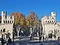 ![]() | Le Châtelet | The gatehouse controlled access to the town from the bridge. A tower constructed in 1368 was replaced by a larger tower in 1380. During the Western Schism Aragonese troops paid by the antipope Benedict XIII defended the papal palaces and bridge tower against attacks by people from the town. The bridge tower collapsed in 1410 during this conflict and was rebuilt in 1414. The bartizans at the corners were added in 1490.[41] |