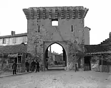 In the first half of the 16th century the crumbling towers were repaired and between 1524 and 1538 extra loopholes were pierced for the newly acquired cannons.[20] In 1561 Pope Pius IV sent his cousin, Fabrizio Serbelloni, to organise the defence of the town against the Huguenots during the French Wars of Religion (1562–1598).[43][44] The walls were repaired, and three of the gates were walled up. These were Porte Saint-Roch, Porte de l'Oulle and Porte de la Ligne. The remaining four gates were strengthened by the addition of protective fortifications (ravelins) outside the gates themselves.[45][46]