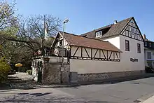 - Diefenbach-Mühle - The exact building year is unknown. In 1671 it was mentioned as belonging to the Junker Molsberger from Bodenheim. It lay in the Flecken beim Backofen ("Spot Near the Oven") in the Lindau court district, and had the distinction of being the only mill on the Wallufbach that had an undershot waterwheel, meaning that it could not run in times of high water. About 1850 or 1860, the master carpenter Diefenbach acquired the mill and used the waterpower to run his woodworking machines. The water for running the mill was brought to the mill through a separate race from the Wallufbach. The waterwheel was found at the back of the building. After changing ownership, the mill was eventually acquired by the Jansen family as a residential and business building in 1957.