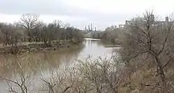Upstream of El Dorado, a U.S. Army Corps of Engineers dam causes the river to form El Dorado Lake, along which a Kansas state park has been designated. The lake consists of about 8,000 acres (3,200 ha) of water with another 8,000 acres of land along its shores designated as park and wildlife areas.[3] The other large lake in the Walnut River basin is Winfield City Lake with 1,250 acres (510 ha) of water surrounded by 1,150 acres (470 ha) of parkland.[4] Both lakes offer recreational opportunities including fishing, boating, hunting, camping, and wildlife observation.
