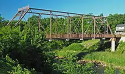 The Walnut Street Bridge is a historic Pratt through truss bridge over the North Fork of the Zumbro River in Mazeppa, Minnesota, United States. It was built as a highway bridge in 1904 but has been restricted to pedestrian use since 1980. It was listed on the National Register of Historic Places in 2003 for having local significance in the theme of engineering.[2] It was nominated for being the work of noted Minnesota engineer William S. Hewett and his bridge building firm the W. S. Hewett Co., an example further recognized for its exceptional ornamentation.[3]