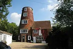Walter's Mill was first mentioned in 1845 and is thought to have been built by the Arnold brothers of Paddock Wood, Kent. The mill was working by wind until 26 July 1911, when it was burnt out. The mill was refitted and driven by a gas engine, at that time having a crenellated top, which was removed in the early 1930s.[1] the mill building was converted and extended to form a house in 1962.[2] In 2005, it was announced that the owners planned to rebuild the cap and sails, and return the mill to a more traditional appearance in the long term.[3]