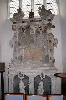 He died shortly before 8 November 1581, the date of his burial at Morden.[15] In his will was dated 4 January 1581 he bequeathed to his wife Mary £20 in cash, the income from the manor and parsonage of Axmouth, the income from four hundred sheep, six cows, six bullocks and six calves, and the use of the house at Bindon and its contents during her life.[16] The reversion of these properties and all his other assets and lands, including Charborough and the contents of his house, he left to his eldest son Thomas Erle, whom he required to pay the sum of £400 each to his two unmarried sisters Bridget and Mary, towards their marriage or maintenance. To the parishes of Morden and Axmouth he left 40 shillings each, for the upkeep of the poor.[16] The executor of his will was his son Thomas.