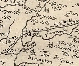 William Ford mentions Walton in his writing when travelling around the Lake District. He writes "the village of Walton, on the line of the wall, as its name denominates..."[6] It is now believed that the name Walton comes from the settlement/farmstead of Wealas – native Celts described by the Anglo-Saxon speaking peoples. There is strong evidence that in many areas of England taken over by Germanic speaking settlers, the native British (Wealas) remained undisturbed, farming the same land they did when the Romans left.
