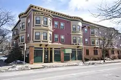 Walton and Roslin Halls is a mixed-used commercial and residential building that was built in two parts. They are located at the corner of Washington and Walton Streets in the Dorchester neighborhood of Boston, Massachusetts, and extend south along Washington Street. The first of the two buildings, that at 3-5 Walton Street and 702-708 Washington, is a three-story brick and wood-frame structure built in 1897 to a design by Cornelius A. Russell; the southern portion was completed a year later. The building housed a commercial space on the ground floor, and residential units above.[2]