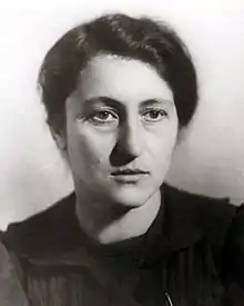 Wasilewska joined the PPS as a student.[3][4] She was a member of the main party council in 1934–37.[8] She served there with her father, whose connections turned out helpful at the various stages and vicissitudes of her career in Poland. Wasilewska later wrote of her student PPS years: "We had a lot of trouble with the communists because they were adamant about carrying out actions that could lead to bloodshed and we thought that was something that should not be done. Rather, we were into innocent skirmishes with the police ... ".[9][10] Her radicalism grew gradually from the early 1930s and she began viewing the socialists as former revolutionaries turned conformists, compromised by collaboration with state authorities. Writing to her mother in November 1931, Wasilewska characterized herself as "turning increasingly Bolshevik", and in the spring of 1932, she joined a radical youth faction that pushed for confrontation with the Sanation regime and advocated joint action with the communists within the newly established Popular Front alliance. At that time she wrote to her mother of the "desperation of the people" and concluded: "the communists will do something or we will, or we together with the communists".[11][12] As Wasilewska drew closer to the communists, her relations with the PPS deteriorated and she lost her seat in the party council, but never left the organization.[13][14]