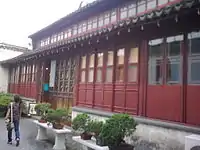 Named from a verse by Chu Ci in The Fishermen, "If the water of Canglang River is clean I wash my ribbon, if the water of the Canglang River is dirty I wash my feet".[1] It is a three-bay terrace with a hipped gable roofline and flying eves. The doors are decorated with carvings that depict scenes from the Romance of the Three Kingdoms. |