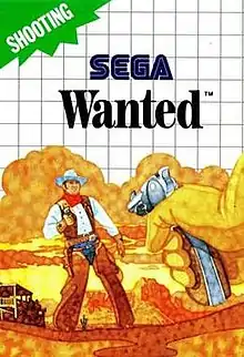 Wanted (ๅ้) is a shoot 'em up released by Sega in August 1989 for the Master System.[2] The player controls a sheriff in the American Old West, attempting to eliminate bandits from around the cities in the game. The game requires the Sega Light Phaser controller. Some copies of the game were released with a misprinted cover art that erroneously described Cloud Master.[3]