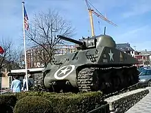 - a Sherman tank in the town square of Bastogne