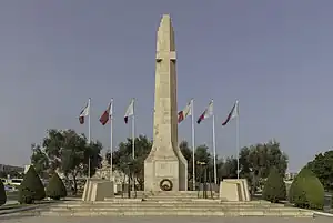 The War Memorial (Maltese: Monument tal-Gwerra) is a memorial obelisk in Floriana, Malta, which commemorates the dead of World War I and World War II. It was inaugurated on 11 November 1938 by Governor Charles Bonham-Carter to the memory of those killed in World War I, but in 1949 it was rededicated to those killed in both world wars.[1]