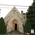 Historic structures in the town include the Cline Blacksmith Shop/Town Jail, a stone structure on Main Street erected around 1830. Two generations of the Cline family operated a blacksmith shop in the structure until 1895. In the earl twentieth century, the structure was converted for use as a town jail.[9] St. Peter's Lutheran Church was founded in 1840 by Rev. John Hamilton and erected its first church on the site in 1870. After this building collapsed in 1934, the present stone church, designed by A. Hensel Fink in Gothic Revival style.[10] The Old Presbyterian Church was constructed in the latter half of the nineteenth century and is a rare example of Italianate style in Wardensville. The Odd Fellows Hall was erected in 1856 on the southern edge of town near the intersection of Main Street and Trout Run Road.