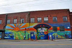 Today the Warehouse District is home to a number of restaurants in addition to nightlife and art venues, including the legendary The Pit BBQ restaurant.[3] The district now features several craft beer establishments including Crank Arm Brewing, Boylan Street Brewpub, Tasty beverage Company, and Brewmasters Bar & Grill.[4]