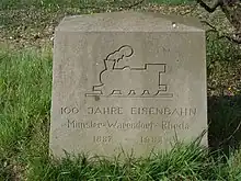 The "Rheda Railway" (Rhedaer Bahn) refers to the line from Rheda via Wiedenbrück, Langenberg, Bad Waldliesborn to Lippstadt. The last passenger train ran on the line on 30 November 1979. The transport of freight between Langenberg and Lippstadt was abandoned on 16 June 1983 and the track was dismantled in 1985. Freight traffic ended between Wiedenbrück Süd and Langenberg on 1 December 1994 and the section was closed on 30 November 1995. Freight traffic was abandoned on the remaining part of the line on 31 December 2000 and the line was closed on 1 May 2001.[4] Since 2006, the Westfälische Localbahn (Westphalian Local Railway) has tried to reactivate the line as a museum railway, although the line is not currently licensed for rail operations by the Federal Railway Authority. The city of Rheda-Wiedenbrück has been building a cycle path on the old route since 2009. Parts of the line have now been dismantled.