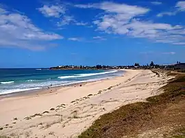 Warilla was officially granted township status in 1951.[2] It is predominantly a residential suburb with many of the houses being built in the 1950s and 1960s. Warilla's main commercial centre is located on George Street with surrounding shops located on Lake Entrance Road and Shellharbour Road, where Warilla Grove Shopping Centre is also situated. There is also a small industrial park located 1 km (0.62 mi) south at Sunset Avenue where light industries are established. Warilla is also blessed with fine beaches which are very popular with locals and tourist especially in summer.