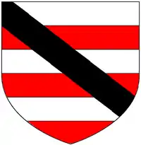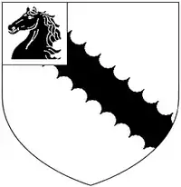 The first member of the Radcliffe family (later of Warleigh) to be recorded is John Radcliffe (d.1560) of Kingset and Mary Tavy,[49] Devon,[50] a tenant-in-chief of Queen Elizabeth I. The arms of Radcliffe of Warleigh were: Argent, a bend engrailed sable a canton of the first charged with a horse's head sable. These arms, without the canton, were the arms of Robert Radcliffe, 1st Earl of Sussex (c.1483–1542), KG and also of the Radcliffe Baronets (created 1813). The family of de Radclyffe which first bore these arms originated at the manor of Radcliffe in Lancashire. Richard de Radclyffe was Seneschal and Minister of the Royal forests in Blackburnshire and accompanied King Edward I (1272–1307) in his wars in Scotland and received from him a grant of free warren in all his demesne lands at Radcliffe.[51] The descent of the Radcliffe family of Warleigh was as follows:[52]