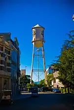 The Warner Bros. Water Tower is a historic water tower located at the Warner Bros. Studios in Burbank, California. Built in 1927, it stands 133 feet (41 meters) tall.[1] The tank, which had a capacity of 100,000 U.S. gallons (380,000 L), is no longer used to hold water and has the WB shield on either side of it.[2] It now serves as a company icon.
