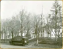 The Warren, Brookfield and Spencer Street Railway is a former Massachusetts streetcar company that ran between Warren, and Spencer, Massachusetts, and passing through West Brookfield, Brookfield, and East Brookfield. Service began in 1896, and ran until around 1917, when service from the Worcester, Brookfield and Spencer Street Railway Company came to town.[1] Other factors contributing to its closure included wartime shortages of coal and a car barn fire, the damage of which was estimated to be around $75,000.[2]