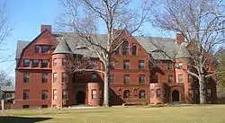 In 1849 Draper returned to Andover, and began a career in the book selling and publishing business by going to work for the publishers Allen, Morill, and Wardwell.[2] In 1854 he became the proprietor of this business, and for nearly 40 years he was the leading publisher, printer and book seller in Andover.[1] During his tenure there, he published more than 600 volumes, some of them reaching quite large sales. In addition, Draper published periodicals for Andover Theological Seminary and was, from 1855 through the Civil War, owner-publisher of the Andover Advertiser, a non-partisan [but strongly pro-Republican] local weekly. Through thrift and enterprise he accumulated a considerable estate.[2] Having no children, Draper and his wife, Irene—a graduate of Abbot Academy in the same year Draper graduated Phillips Academy—dispensed more than $100,000 to institutions in Andover. They were large benefactors of Abbot Academy (now a part of Phillips Academy). Abbot's Draper Hall (1890) was built by the Drapers. Warren Draper served for more than 20 years as the treasurer of Abbot, was one of the school's trustees, and also acted as general superintendent of the material interests of the school.[3] The Drapers also established a prize fund and a scholarship at Phillips Academy, and built Draper Cottage for the academy in 1892. This cottage was given to the school, provided an annuity be given his wife until her death, which occurred on 27 December 1916 when she was in her 93rd year.[4]