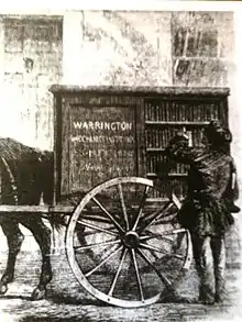 The Warrington Perambulating Library has been described by historian Ian Orton as "one of the most revolutionary library advances of the nineteenth century". Among the earliest mobile libraries in the UK,[1] it was set up by the Warrington Mechanics' Institute in Cheshire, England in 1858. Keen to increase borrowing from its library, the institute determined in the summer of that year to raise money for the purchase of a one-horse van, which it planned to fill with books and send each week "to every door in Warrington and the vicinity".[2]