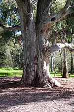 Prior to European settlement, Warriparinga played a significant role in the traditions of the local Kaurna people[1] – Warriparinga is the gateway to the Tjilbruke Dreaming, which relates the story of how many of the springs south of Adelaide were formed.[2] Warriparinga was also a camping ground for the indigenous population, with kangaroos, emus and wallabies in the area, along with supplies of native food. Evidence of the traditional uses of the land includes a scarred tree, possibly used to make a shield or dish, and a number of scatter sites in the area where archaeologists have found aboriginal implements.[3]