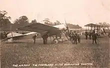 Blackburn landed at Barnsley at 4:55 but, in deteriorating conditions, the Avro crew flew past the control and came down at Dewsbury. Conceding the race, Raynham returned to Leeds, arriving ahead of Blackburn who completed the race at 5:48. The Yorkshire crew received a great ovation and Harold Blackburn was carried shoulder-high from his machine by the partisan crowd.[5]