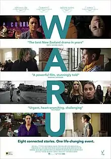 Waru is a 2017 New Zealand semi-anthology drama film about the tangi (funeral) of a small boy named Waru who dies at the hands of his caregiver, and how the boy's death impacts the community.[1][2] After featuring at the New Zealand International Film Festival and Toronto International Film Festival in 2017, it received a general release in New Zealand in October 2017.[3] It has since featured in a number of other film festivals.[4]