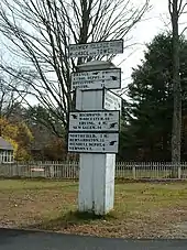 According to the United States Census Bureau, the town has a total area of 37.6 square miles (97.5 km2), of which 37.3 square miles (96.7 km2) is land and 0.31 square miles (0.8 km2), or 0.83%, is water.[5] The geography of Warwick is dominated by Mount Grace. This mountain is located in the center of town and has a network of hiking and cross-country ski trails. Most of the mountain is owned by the state (as part of Mount Grace State Forest) and open to the public. The Metacomet-Monadnock Trail passes over the 1617 foot (493m) summit. Approximately a third of the town's land is protected as part of the Warwick State Forest thereby offering a variety of outdoor activities for the public. There are several ponds, some created by dammed brooks in Warwick, including Moores Pond, Sheomet Lake, Laurel Lake, Wheeler Reservoir, Richards Reservoir, Hastings Pond and Stevens Swamp, a mosaic of wetlands. A small wildlife management area is also located within town. The Mount Grace Land Conservation Trust, which was founded by Warwick resident Keith Ross in 1986, pays homage to the mountain by dint of its name, though its land protection activities take place in 23 municipalities.[6]