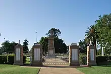 The Warwick War Memorial is situated in the south eastern corner of Leslie Park, inside the Memorial Gates which address the corner of Fitzroy and Palmerin Street, Warwick.[1]