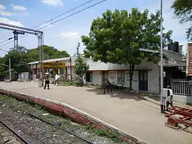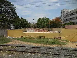 Washermanpet railway station is one of the railway stations in Chennai, India. It is one of the stations of the Chennai Beach–Gummidipoondi and Chennai Beach-Arakkonam sections of the Chennai Suburban Railway Network. It serves the neighbourhood of Washermanpet, Korukkupet and Tondiarpet. It is situated at Washermanpet, with an elevation of 9 m above sea level. The station lies at the eastern end of the 'diamond' junction of Chennai's railway network, where all the lines of the Chennai Suburban Railway meet.