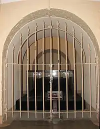 Washington's Tomb is an empty burial chamber two stories directly below the Rotunda of the United States Capitol building in Washington, DC. It was included in the original design of the building by William Thornton and intended to entomb the body of George Washington, the first President of the United States. The original design of the rotunda, and the Crypt beneath it, included a central glass floor allowing the public to view Washington's Tomb two floors below, but this was never implemented.[1]