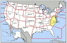 WaADS was established in December 1956 as the 4625th Air Defense Wing.[1] It was not assigned any units until 1958 when it assumed control of former ADC Eastern Air Defense Force units primarily in Maryland, Delaware, and Virginia.[2] Units of the 32d Air Division in North and South Carolina were transferred to WaADS in 1961 as the 26th Air Division area of responsibility expanded southward.[3] The organization provided command and control over several aircraft, missile and radar squadrons.