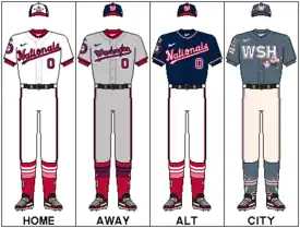 Starting in 2022, the white alternate uniform with the "Nationals" script became the primary home uniform.