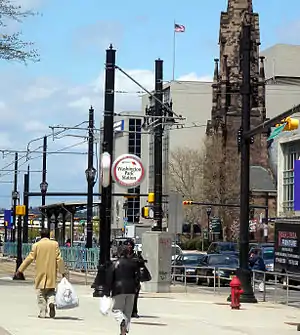 Harriet Tubman Square station is a light rail station on the Newark Light Rail's Broad Street Extension. It is located in Downtown Newark, New Jersey, on the southbound side of Broad Street between Bridge and Lombardy Streets adjacent to the park that lends its name to the station. It is directly across from the headquarters of IDT Corporation and 1 Washington Park and during the afternoon rush hour carries many outgoing commuters from these buildings to Newark Penn Station.