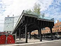 At the current location of the World Trade Center site, Washington Street once ran through a neighborhood called Radio Row, which specialized in selling radio parts. The neighborhood was demolished in 1962, when the area was condemned to make way for the construction of the World Trade Center. Much of Washington Street's route within this area, from Hubert Street in Tribeca to Albany Street south of the current World Trade Center, has since been demolished except for a one-block segment between Barclay and Vesey Streets.[3] In the first decade of the 21st century, another one-block segment of Washington Street in Tribeca still ran from Warren to Murray Street.[4] 101 Warren Street was being developed on the site by 2006,[5] replacing that remaining section of Washington Street.[6]