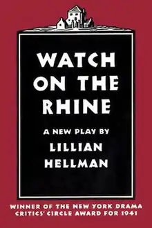 Watch on the Rhine is a 1941 American play by Lillian Hellman. In an essay on World War II, a contributor to The Companion to Southern Literature (2002) wrote that the play's "peculiar combination of drawing-room comedy in a genteel southern home with sinister corruption of the Nazi regime in Europe made for a unique and powerful drama, one strong enough to win the New York Drama Critics' Circle Award."[1]