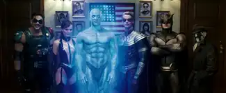 The only member of the group with genuine superpowers, Doctor Manhattan is virtually omnipotent and works for the U.S. government. He is a scientist who suffered an accident during 1959, giving him superhuman powers. Crudup plays Osterman in flashbacks as a human and is replaced for his post-accident scenes with a motion-capture CG version of himself. During filming, Crudup acted opposite his co-stars, wearing a white suit covered in blue LEDs, so he would give off an otherworldly glow in real life, just as the computer-generated Manhattan does in the movie. His body was modeled on that of fitness model and actor Greg Plitt. The crew then 3D-digitized Crudup's head and "frankensteined it onto Greg Plitt's body."[23] Snyder chose not to electronically alter Crudup's voice for Manhattan, explaining the character "would try and put everyone as much at ease as he could, instead of having a robotic voice that I think would feel off-putting."[24] Keanu Reeves was also offered the role. Reeves was interested in the role but he ultimately passed.[25]- Jaryd Heidrick as Young Jon Osterman
