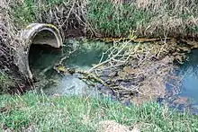 In 1997, the Yamaska River was one of the most polluted rivers in the province of Quebec—mainly because of agricultural waste and pesticides.[34] Human activities, including environmental disturbances in the Yamaska River basin, caused a deterioration in the quality of both surface and groundwater.[34] Three other polluted rivers also flow into the St. Lawrence River—Boyer River, Chaudière River, and L'Assomption River. The federal and provincial governments established the Saint-Laurent Action Plan 1990-1994 and the Saint-Laurent Vision 2000, 1994 -1998 to conserve and protect the river. One of the goals of the agreement was to "prevent and reduce the effects of agricultural pollution on four rivers—Yamaska River, Boyer River, Chaudière River, and L'Assomption River—that flow into the St. Lawrence".[34] According to the non-profit organization, the Quebec-based Rivers Foundation, there were 651 sewage spills in the Yamaska River in 2015.[35] On June 28, 2016, the City of Saint-Hyacinthe, Quebec dumped approximately 8,000 tonnes of raw sewage into the Yamaska River allegedly causing the deaths of thousands of fish.[35]