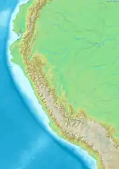 The Andes divide Peru into three natural drainage basins: Pacific basin (279,000 km2), Atlantic basin (959,000 km2) and Lake Titicaca basin (47,000 km2). According to the National Water Authority (Autoridad Nacional del Agua—ANA), the Pacific basin has 62 rivers; the Atlantic basin has 84 rivers; and Lake Titicaca basin has 13 rivers.[4] The number of rivers in Peru varies depending on the source of information, because in some cases tributaries are counted as rivers in their own right and in other cases not.
