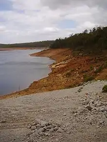 Water restrictions have been employed in various Western Australian towns when poor rainfall has led to water shortages. For instance, in the summer of 1977–1978, Perth was subject to a total sprinkler ban.[56][57] Newman and Nullagine experienced water restrictions from 1991 and 1992 onwards as the result of drought.[58] Similarly, the resort towns of Yallingup and Dunsborough experienced water restrictions in 1997 during a heatwave,[59] and Kalgoorlie-Boulder had temporary water restrictions imposed during 1998 due to shortages in its reservoirs (which contain water pumped through the Goldfields Water Supply Scheme).[60]