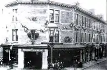 The centre of Waterfoot has a distinctive canopied walkway in decorative iron and glass that is in need of restoration, forming the frontage of Victoria or Trickett's Arcade, started in 1897 and completed in March, 1899. The arcade was built by Sir Henry Whittaker Trickett – a local businessman who was five times mayor of Rawtenstall. In 1914, a clock was added to the front of the arcade in his memory.[4] Hidden inside are eight other shop spaces and a decorative central iron and glass feature that have been closed to the public for 50 years. Yet on its opening 15,000 people turned up for the ceremony.[5]