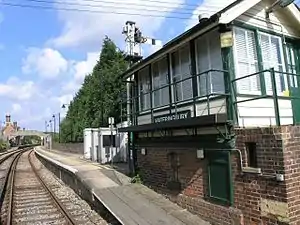 The signal box, which was Grade II listed in 2013[2] remains to control the level crossing.