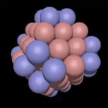 In geometry, the Waterman polyhedra are a family of polyhedra discovered around 1990 by the mathematician Steve Waterman. A Waterman polyhedron is created by packing spheres according to the cubic close(st) packing (CCP), also known as the face-centered cubic (fcc) packing, then sweeping away the spheres that are farther from the center than a defined radius,[1] then creating the convex hull of the sphere centers.