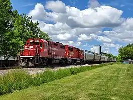 The Watertown Subdivision or Watertown Sub is a 92.7-mile (149.2 km) railway line in Wisconsin operated by the Canadian Pacific Railway (CP) through its primary United States subsidiary, the Soo Line Railroad. It meets CP's Tomah Subdivision in the west in Portage and runs to Milwaukee in the east where it meets the C&M Subdivision.[1][2][3] The Watertown Subdivision had previously been operated by the Chicago, Milwaukee, St. Paul and Pacific Railroad (CMStP&P/Milwaukee Road), though the Soo Line Railroad took it over when the Milwaukee Road folded. Canadian Pacific gained ownership via taking over the Soo Line.